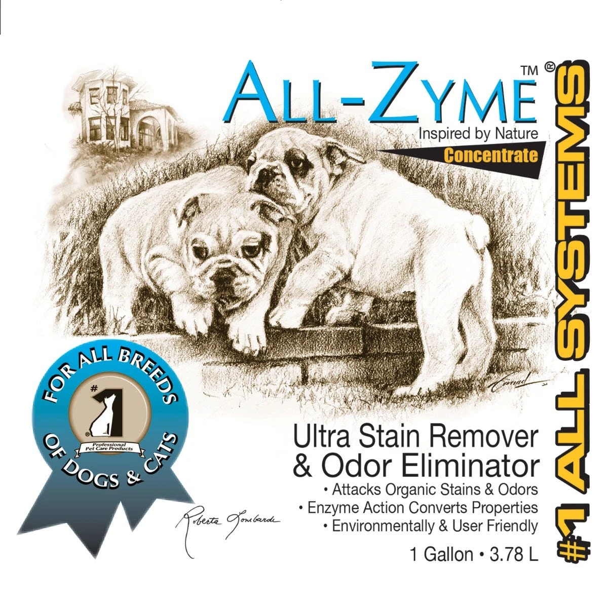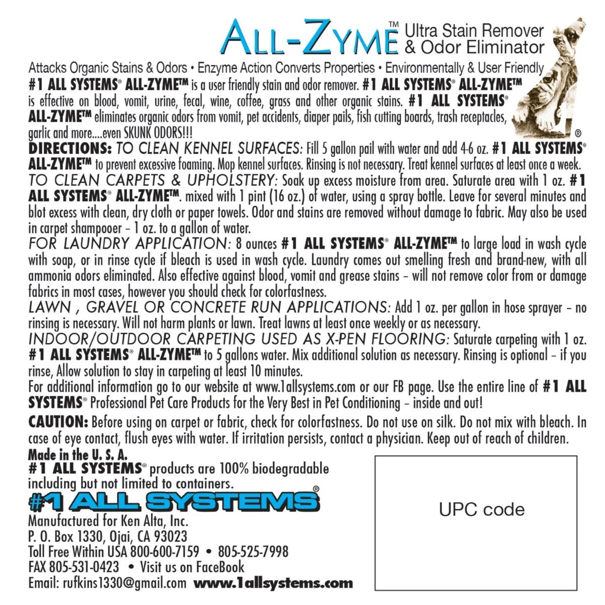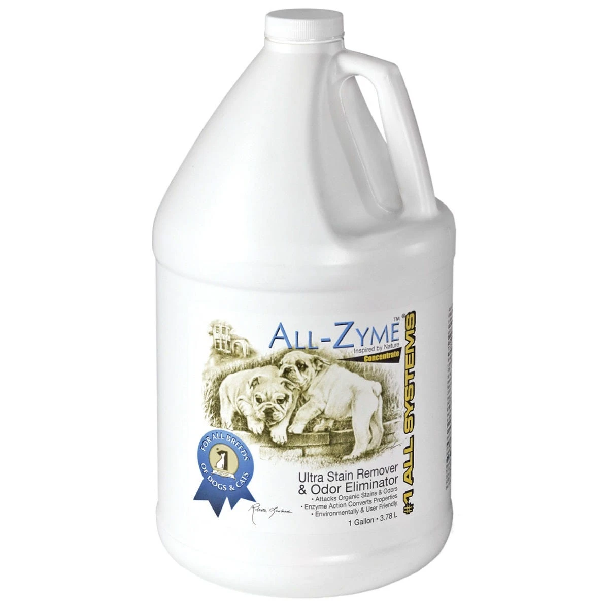 All Systems® All-ZymeTM Stain and Odor Remover Concentrate is a high concentrate, all-natural and biodegradable enzymatic product with surfactants permanently eliminates pet odors and gets rid of the stain. #1 All Systems All-Zyme is safe for pets, plants and the environment. Use All-Zyme to clean organic stains such as pet waste, blood, grass and pet stains- even skunk odors.