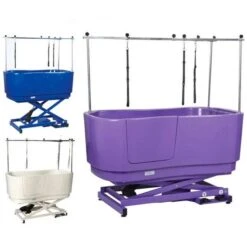 Constructed of sturdy, high-density polypropylene, our Master Equipmentâ„¢ PolyPro Electric Lift Grooming Tubs are rust- and tarnish-resistant. This back-saving electric tub has a foot-operated lift to elevate wet, heavy pets during bathing. Perfect for your dog washing station.