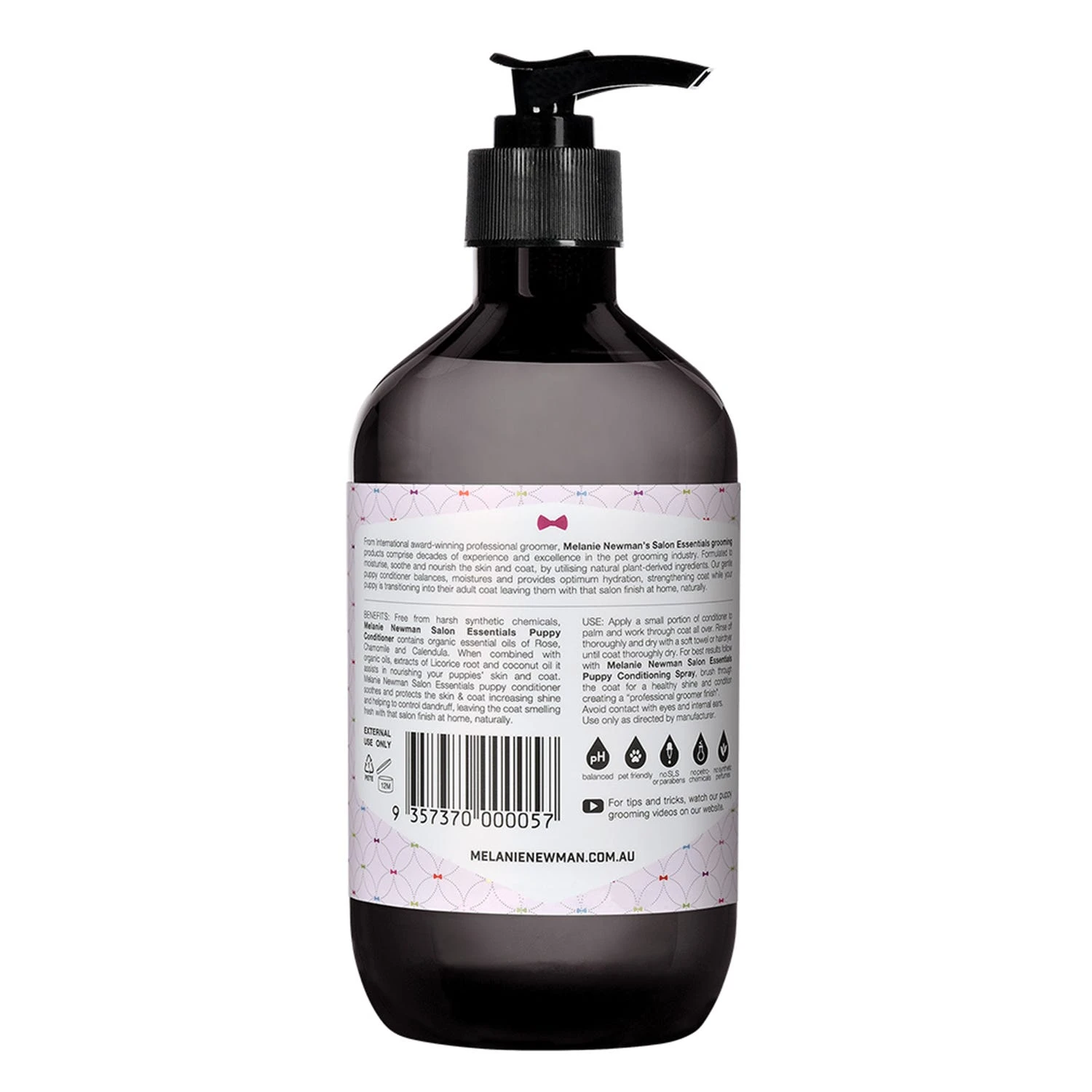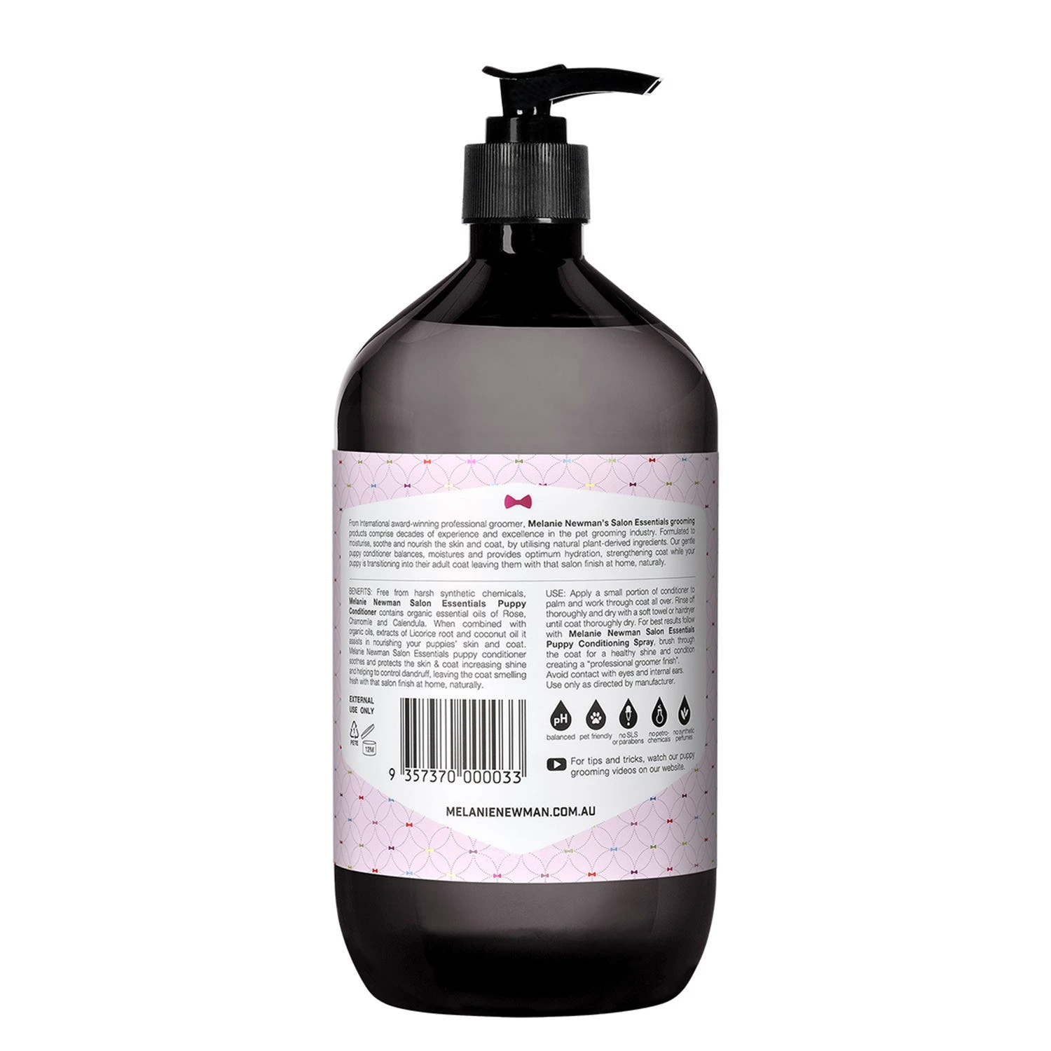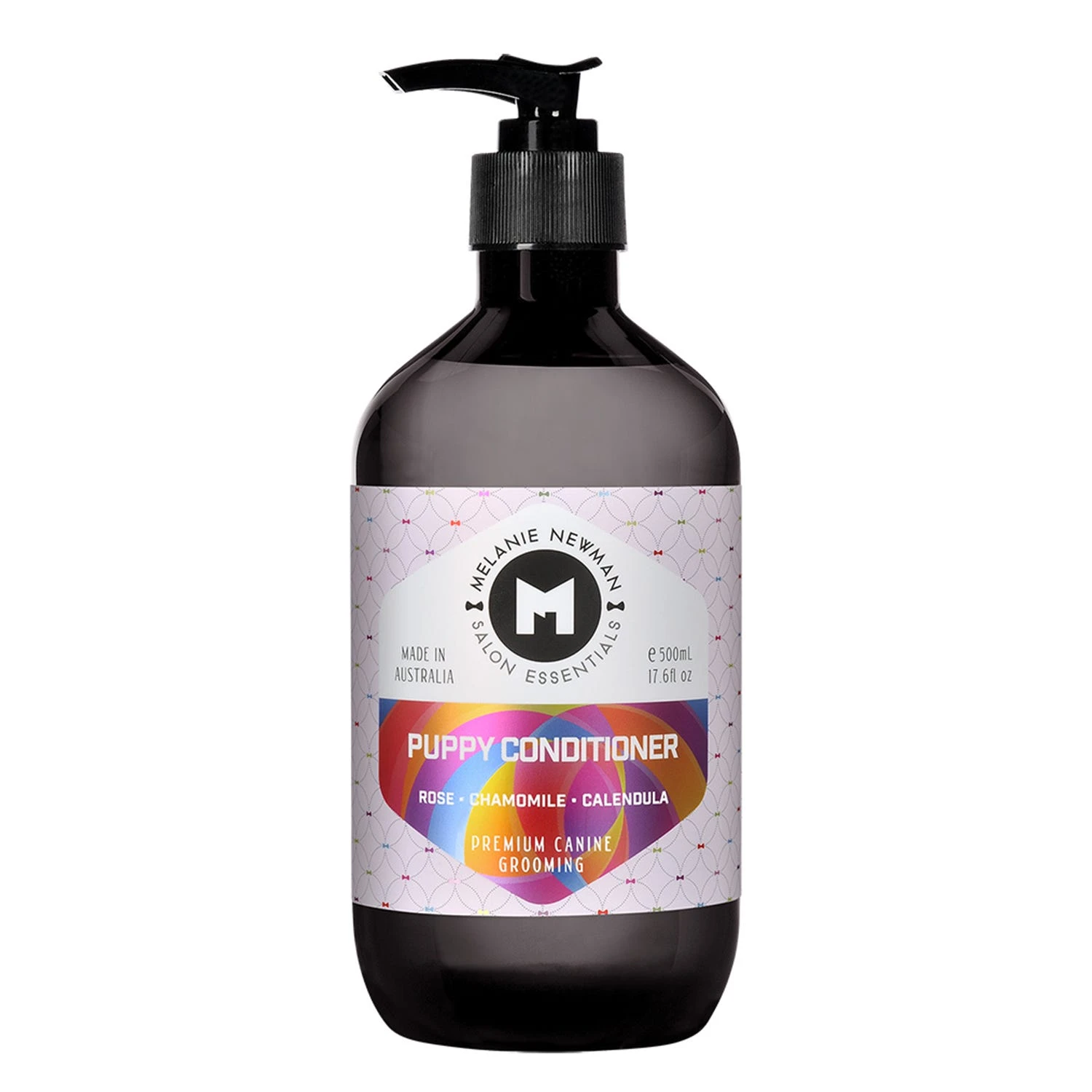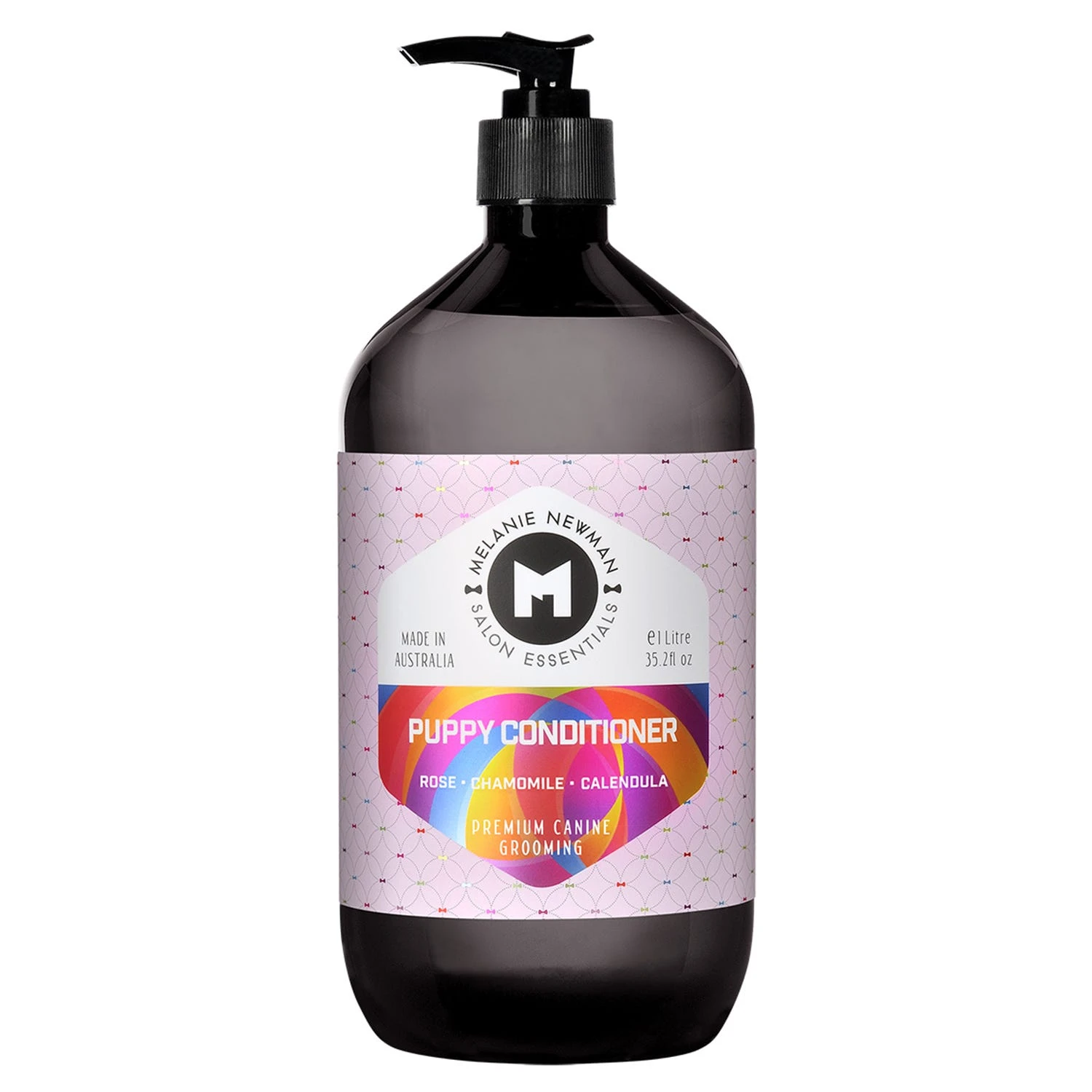 Formulated to exacting specifications for all Puppy’s coat types, utilizing natural plant derived ingredients Melanie Newman® Puppy Conditioner is the ultimate luxurious conditioner for your puppy. Formulated to gently nourish the soft skin and coat using luxurious organic essential oils of Rose, Chamomile & Calendula coupled with licorice root and coconut oil. Puppy Conditioner will help keep puppies skin moisturized and coat hydrated while puppies coat is changing into its adult coat. Melanie Newman Salon Essentials Puppy collection is formulated for all breeds. Puppy collection will leave pets looking and feeling anew.